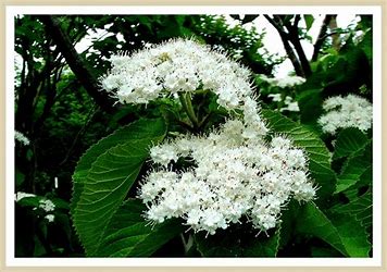 역시 산토끼꽃목의 나무입니다. 산허리 아래의 숲 속에서 자랍니다. 높이는 3m 정도이며, 잎은 마주나고 둥글고 넓고 달걀을 거꾸로 세운 모양으로 톱니가 있습니다. 길이 5~14cm의 잎이 가지에 마주 보며 달립니다. 잎 끝에 짧은 꼬리처럼 뾰족한 둥근 달걀 모양이며 가장자리에 톱니가 있습니다. 잎 뒷면에는 액을 분비하는 선점이 있으며, 양면에 별 모양의 털이 자랍니다. 잎자루는 길이가 6~20mm이며, 턱잎은 없습니다. 꽃은 흰색이며, 5~6월에 잎이 다리 가지 끝이나 줄기 끝부분에 취산꽃차례 또는 집산꽃차례(꽃대 끝에 꽃이 먼저 피고 그 밑에 가지가 나뉘며 차례로 꽃이 피는 꽃차례)로 달려서 핍니다. 잔털이 있으며 끝이 우산살처럼 두 번 갈라진 꽃대가 나와 끝마다 지름 5mm 정도의 꽃이 피어납니다. 한꽃 안에 수술과 암술이 같이 있습니다. 꽃받침에는 털이 있고 5갈래로 갈라지며 연한 녹색을 하고 있습니다. 수술이 꽃받침보다 깁니다. 열매는 달걀 모양으로 9~10월에 붉게 익습니다. 단단한 핵으로 쌓인 씨앗은 길이가 7mm 정도의 넓은 달걀형 열매에 반질반질한 붉은색으로 익습니다. 겨울에도 가지에 매달려 있는 경우가 많습니다.