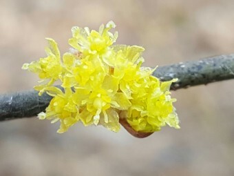 산수유와 생강나무의 수꽃이 비슷하게 생겼으며, 산수유보다 생강나무의 꽃의 수가 많고, 퍼져있습니다.