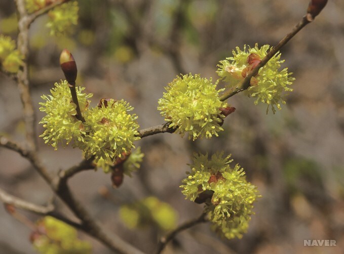 녹 나무과의 낙엽 활엽 교목입니다. 높이는 3m 정도입니다. 봄을 알려주는 대부분의 나무들처럼 잎보다 꽃이 먼저 핍니다. 일찍이 겨울잠을 깬 곤충들에게 먹이는 제공하는 중요한 식량으로 쓰입니다. 다른 나무보다 꽃이 빨리 피는 편입니다. 잎은 어긋나고 넓은 달걀 모양에 세 갈래로 얕게 갈라집니다.