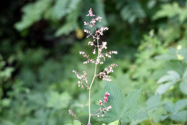 풀밭이나 길가나 산기슭에서 자랍니다. 줄기는 털이 없고 길이가 1~3m 정도입니다. 잎은 어긋나고 길이와 폭이 5~ 13cm이며, 둥근 콩팥 모양 또는 둥근 심장모양이며 가장자리는 5~7개로 갈라집니다. 잎 포면은 녹색이고 뒷면은 흰빛이 돌며 양면에 털이 없습니다. 잎자루는 길이가 3~ 10mm이고 잎몸의 뒷면에 달립니다.