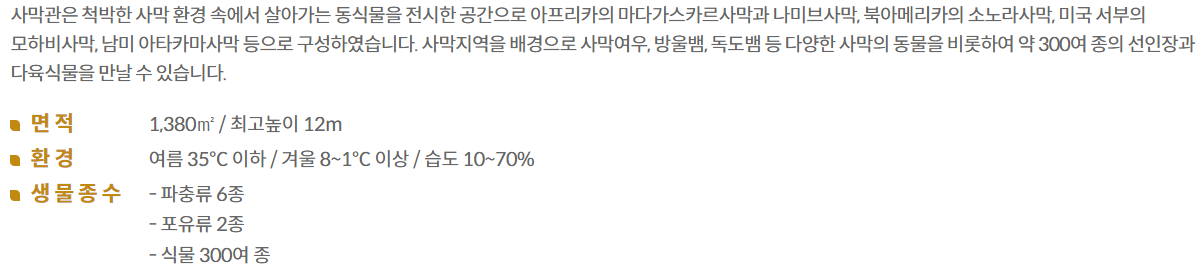 에코리움 : 에코리움(상설주제전시관, 열대관, 사막관, 지중해관, 온대관, 극저관, 기획전시실, 4D입체영상관, 어린이생태글방)