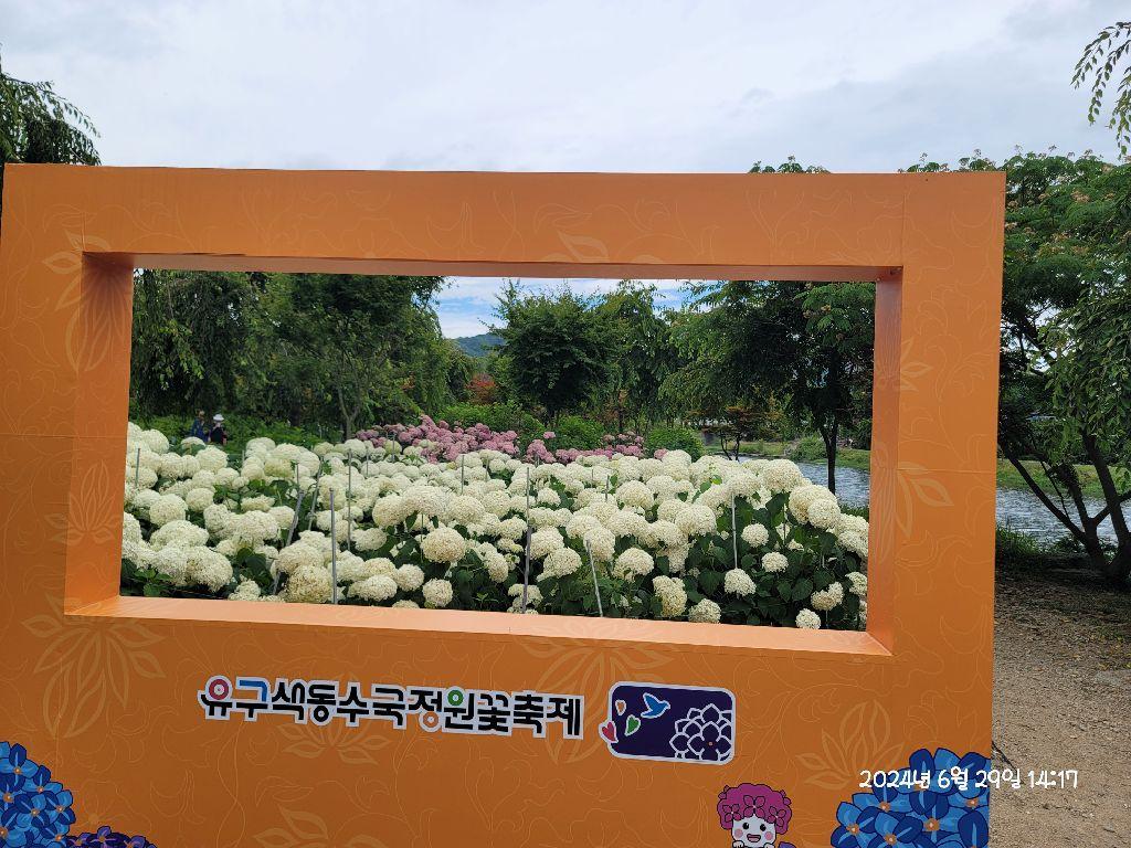 충남 공주시 유구천을 따라 약 1km 구간에 펼쳐진 유구색동수국정원은 무려 22종, 16,000본의 수국이 식재된 중부권 최대 규모의 수국정원이에요. 에나멜수국, 목수국 등 다양한 품종이 조화를 이루며 장관을 만들어내고 있어요. 특히 포토존이 곳곳에 마련돼 있어 방문객들의 인생샷 명소로 떠오르고 있답니다.