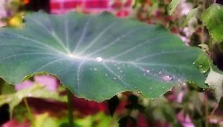 토란잎은 연잎보다는 보다 옆으로 긴 형태이며, 줄기의 힘이 탄탄합니다.